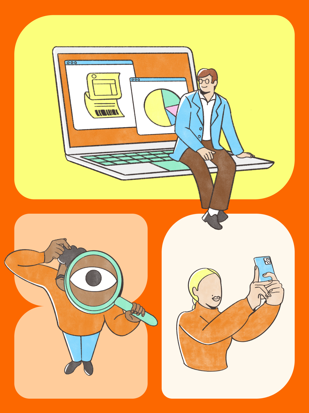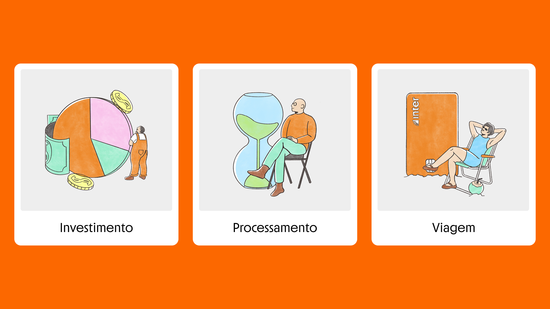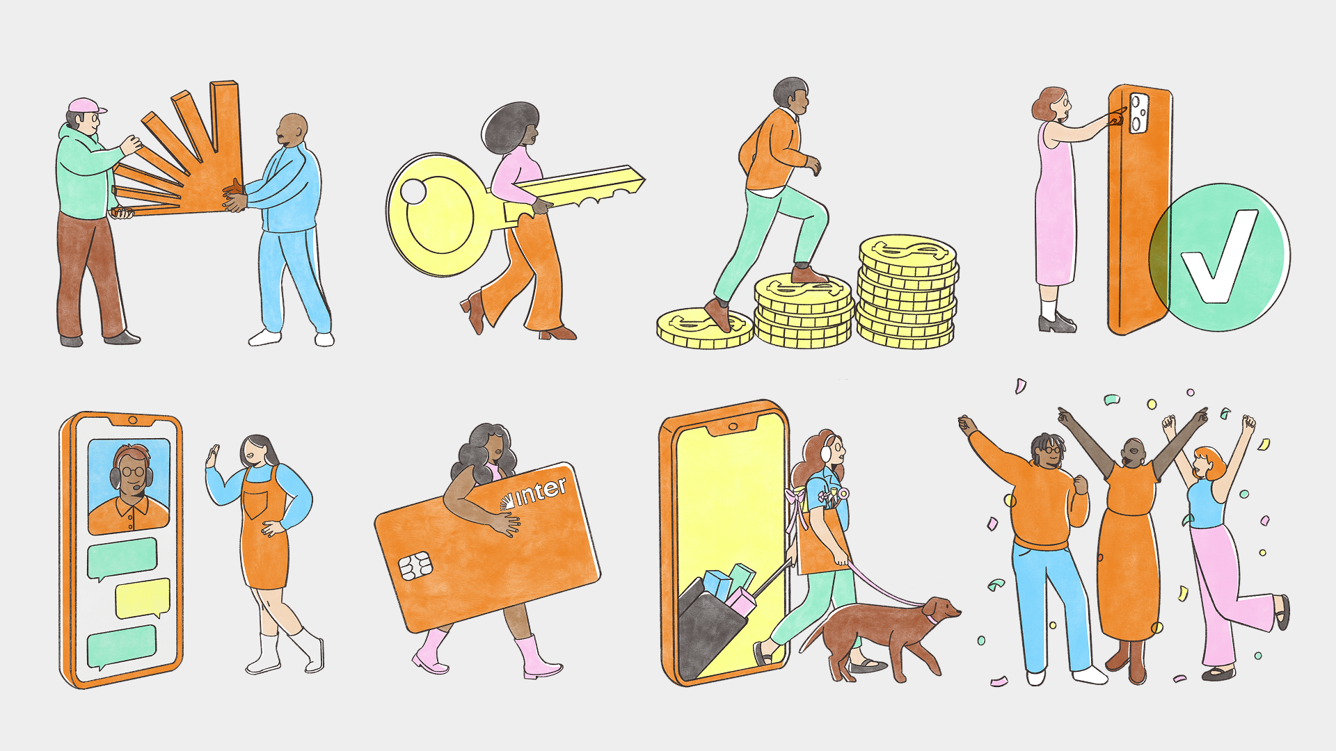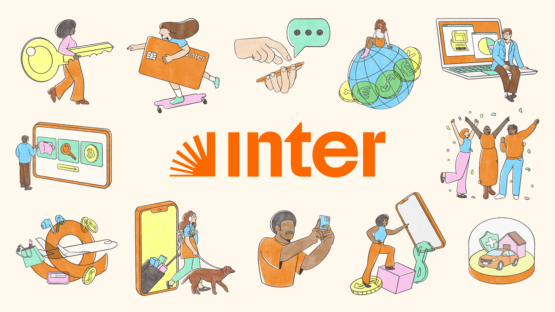 A humanized and versatile illustration system, created to reinforce Inter’s identity and visually translate the concept of the Super App.