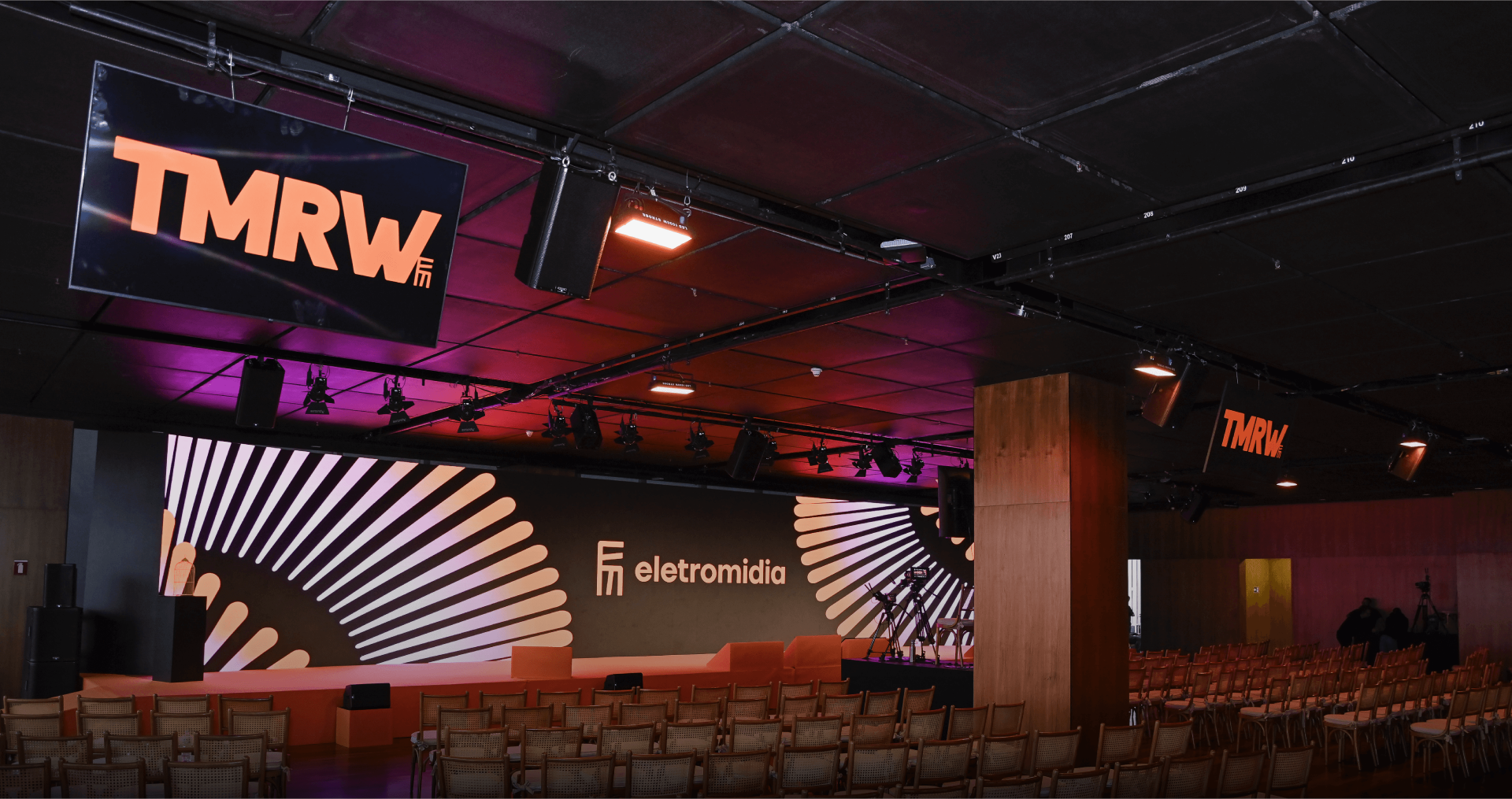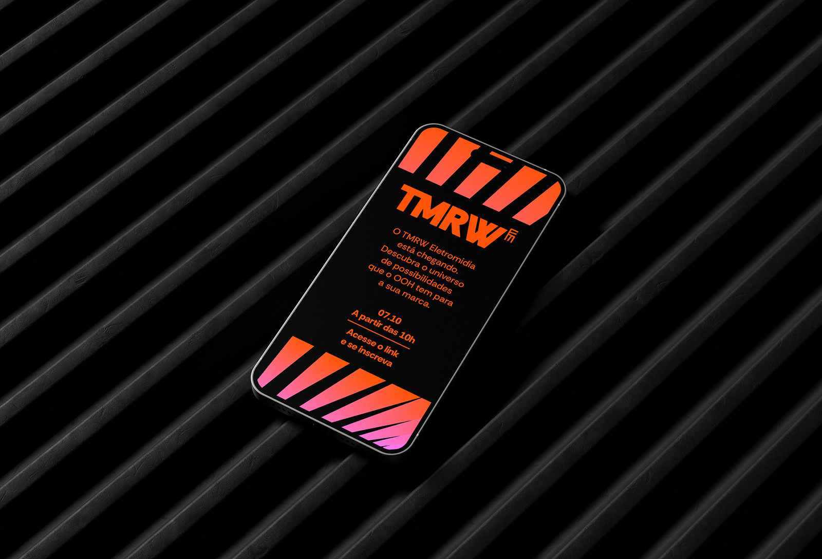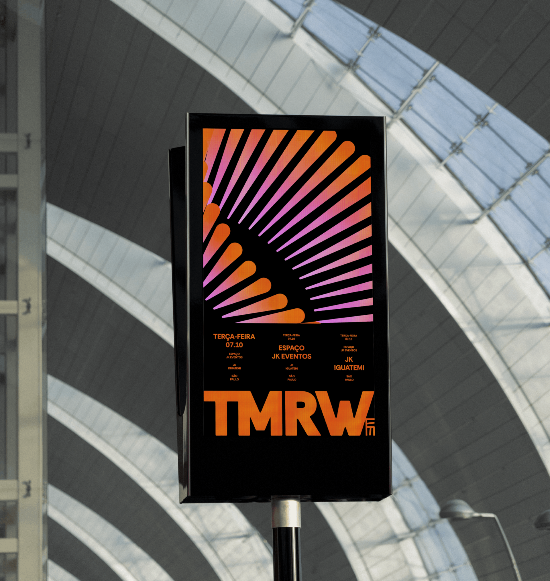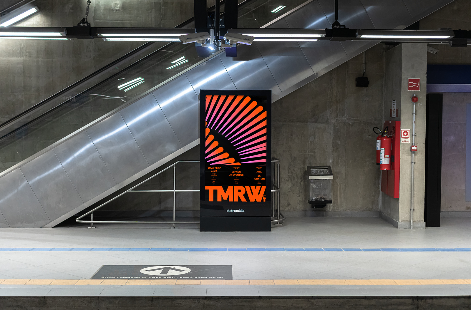 Fomos responsáveis pela criação da identidade visual do TMRW 2026, evento anual de inovação e upfront da Eletromidia, uma das principais plataformas de mídia Out of Home (OOH) do Brasil.
