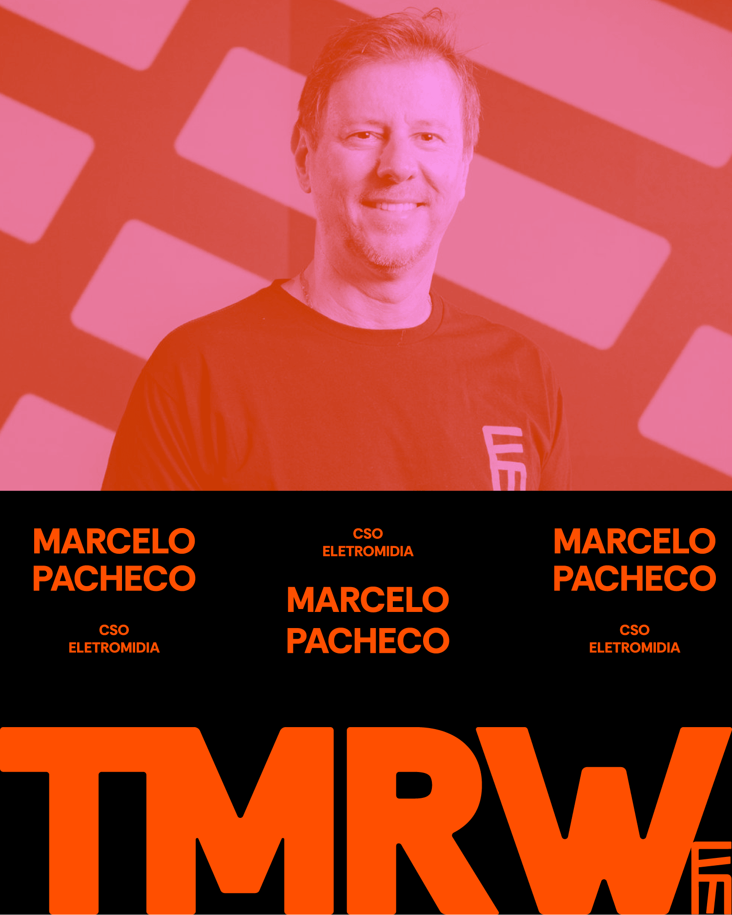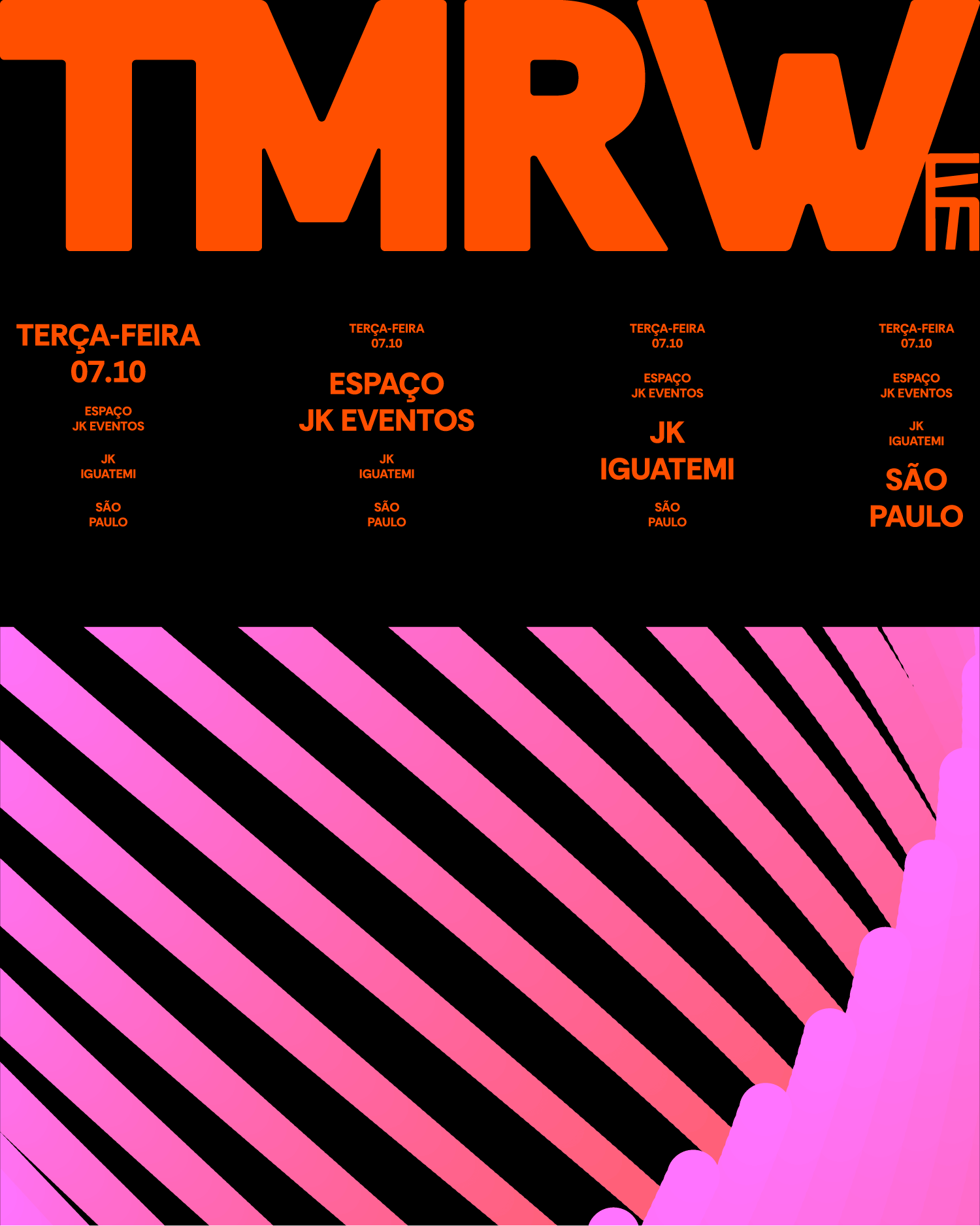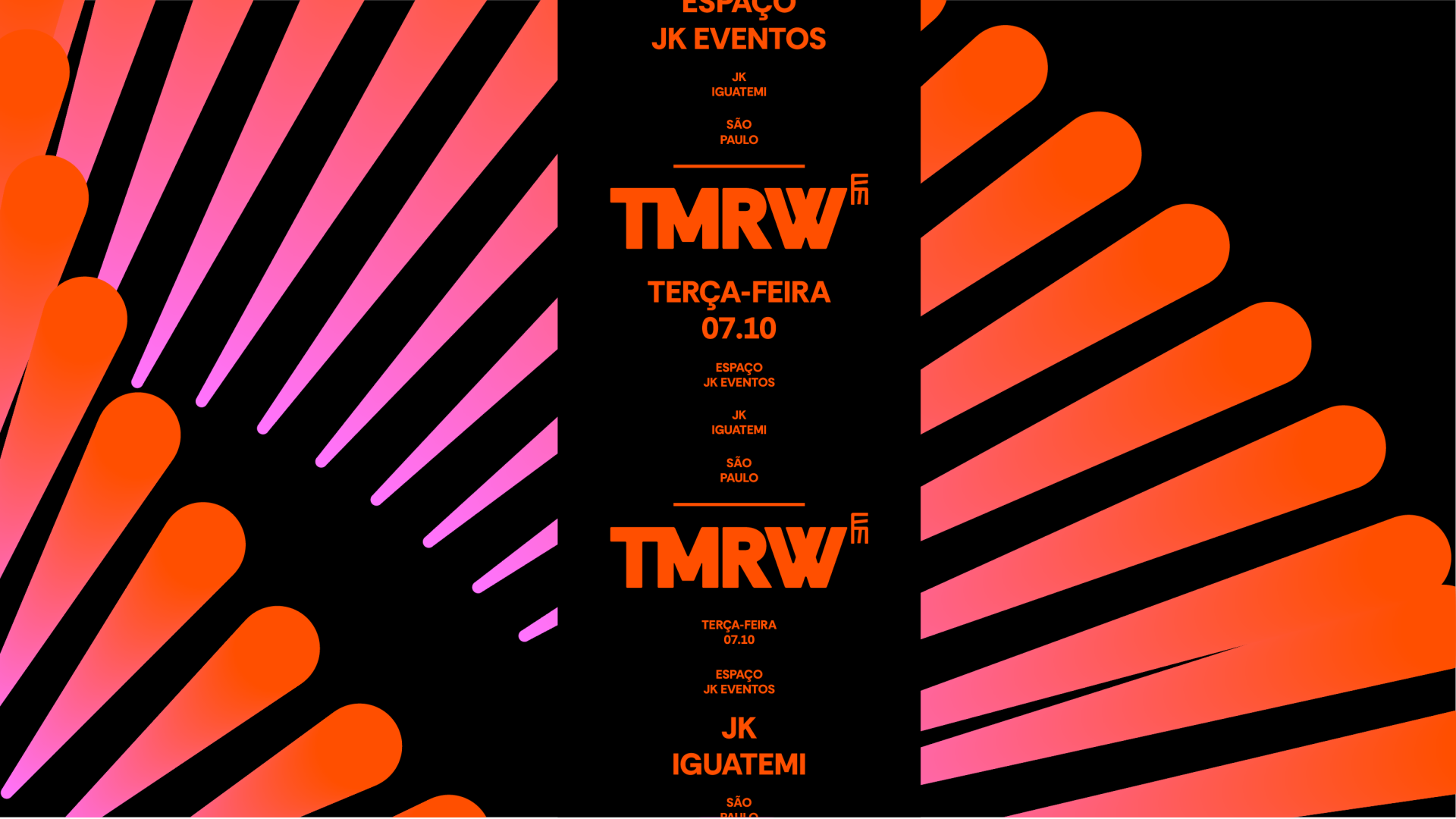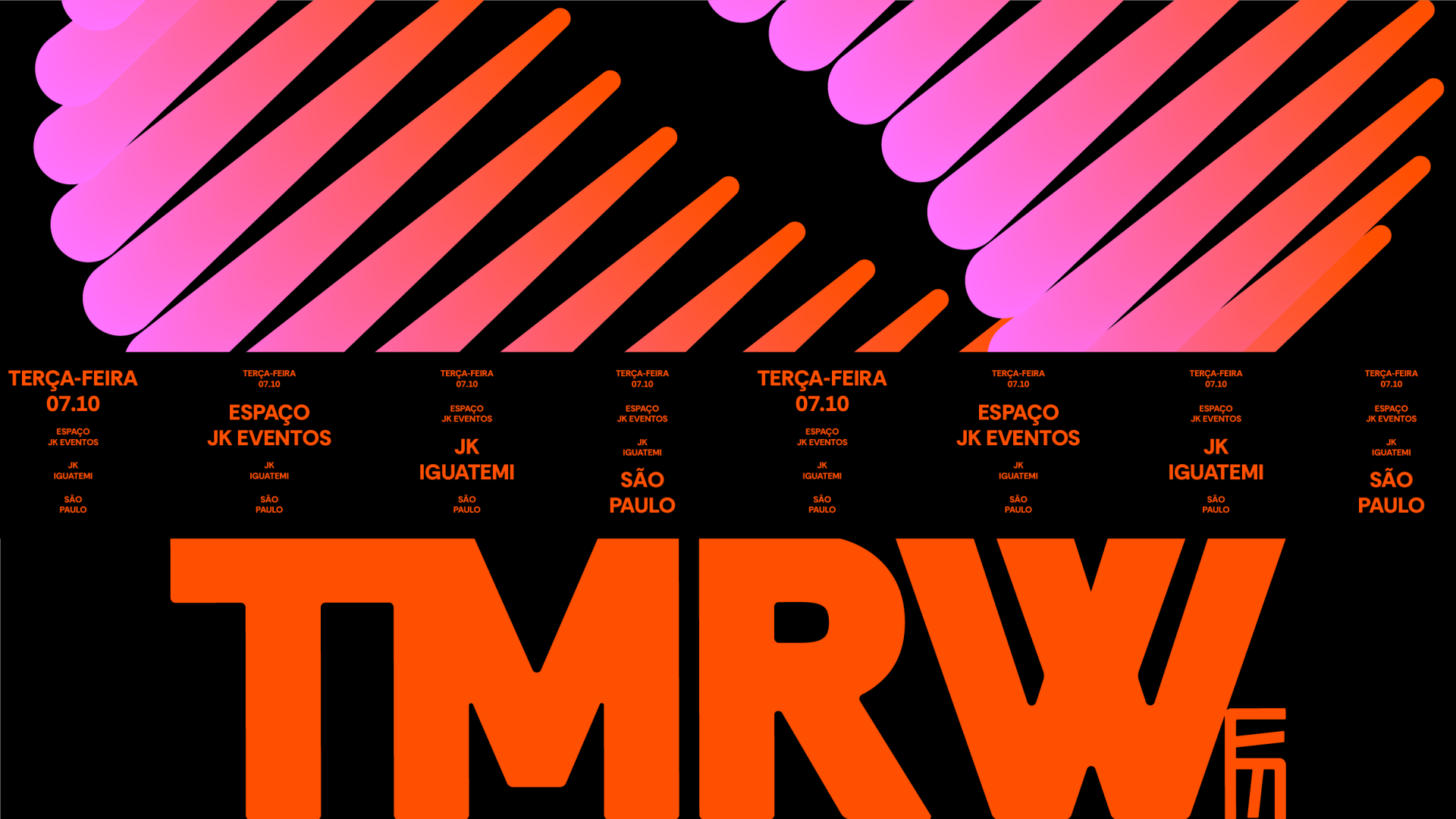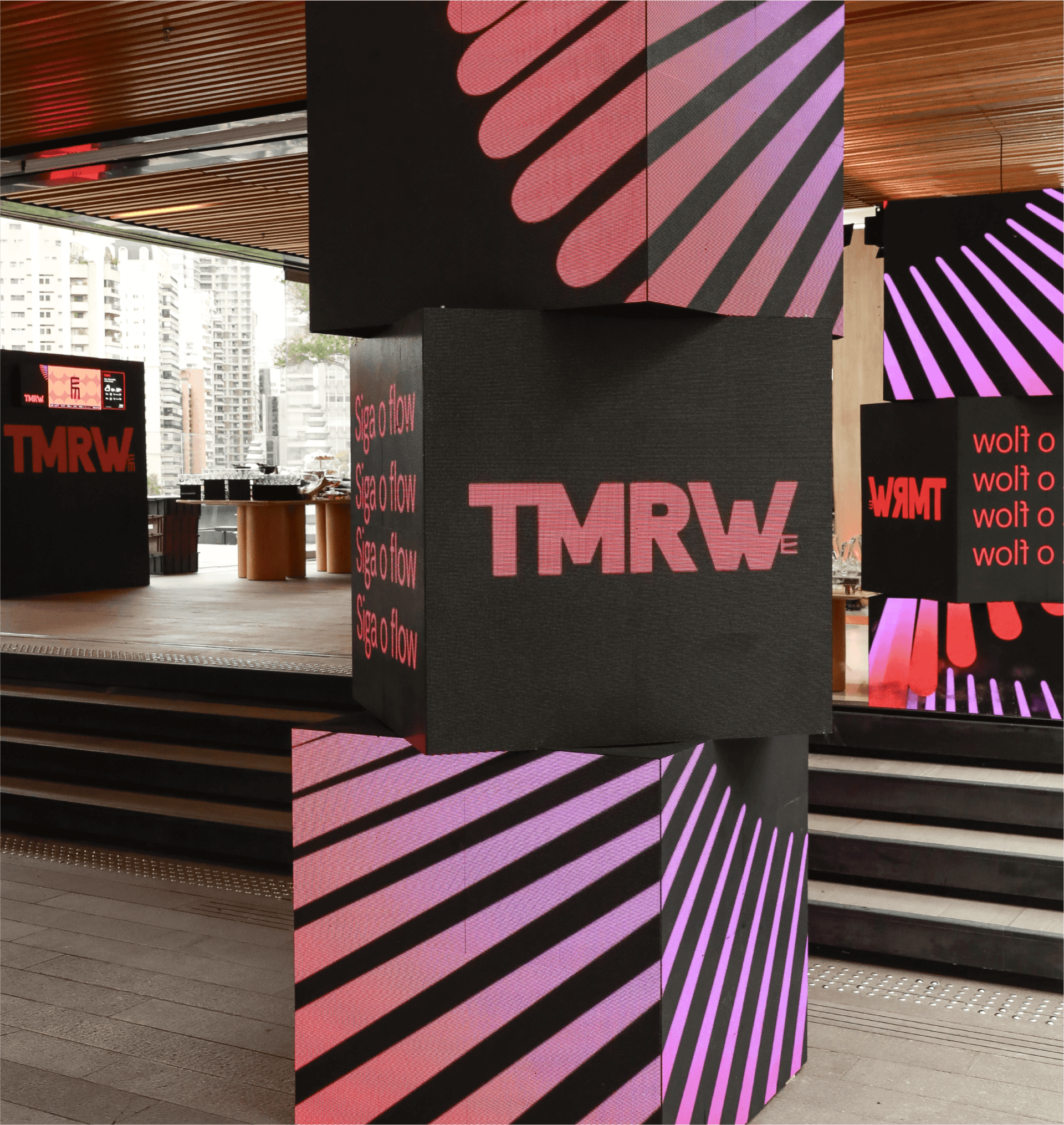 Fomos responsáveis pela criação da identidade visual do TMRW 2026, evento anual de inovação e upfront da Eletromidia, uma das principais plataformas de mídia Out of Home (OOH) do Brasil.